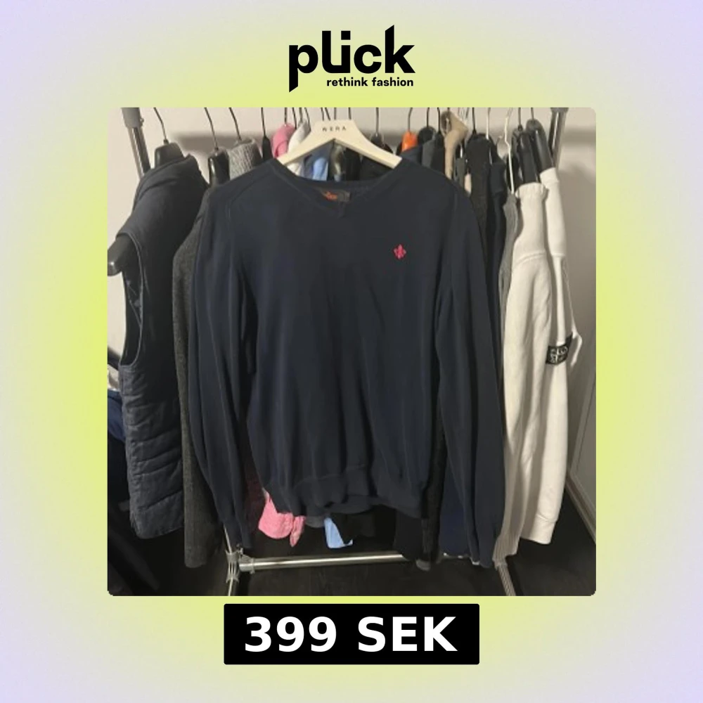 Snygg mörkblå stickad tröja från Morris med röd broderad logga på bröstet. Tröjan har v-ringad hals och långa ärmar, perfekt för lager-på-lager. Klassisk och stilren design som funkar till det mesta.