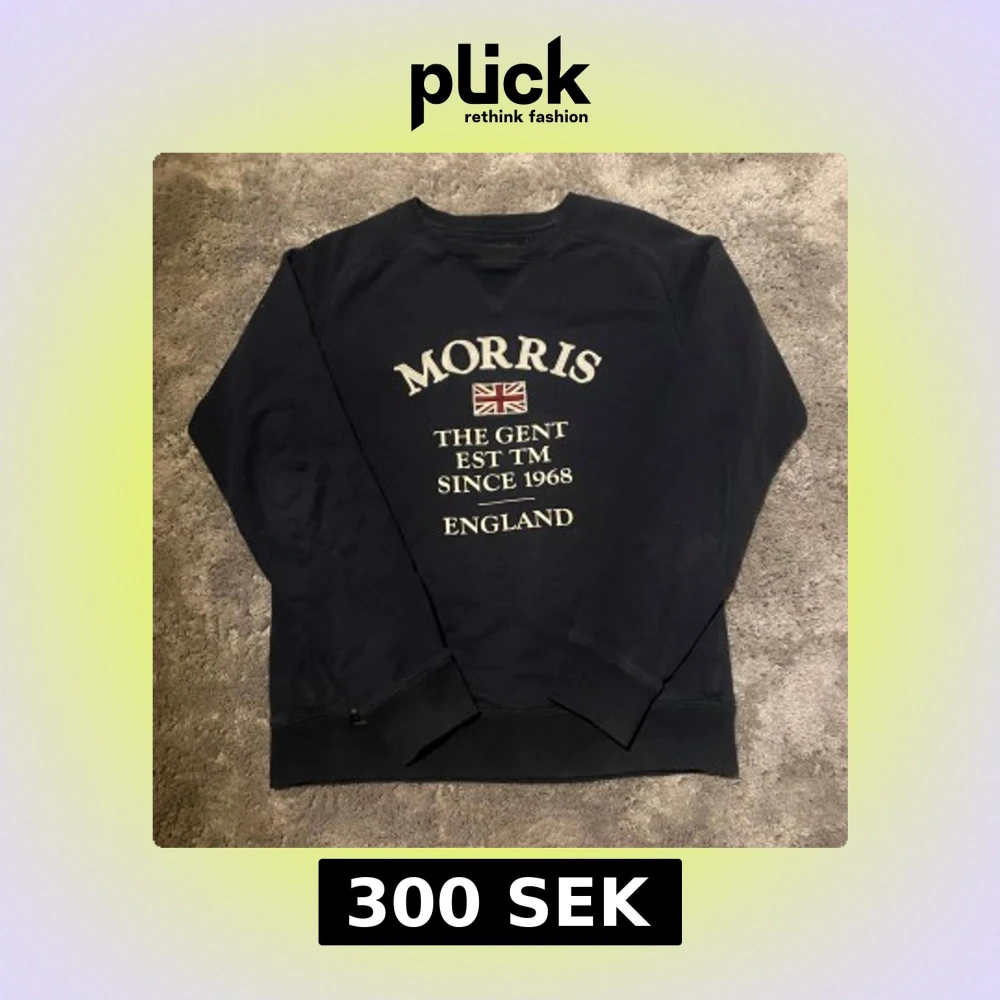 Snygg svart sweatshirt från Morris med text och brittisk flagga på framsidan. Perfekt för en avslappnad stil med långa ärmar och rund halsringning.