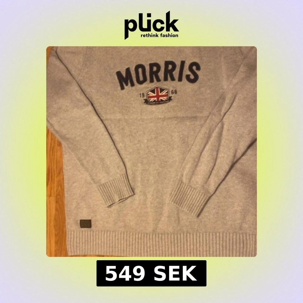 Säljer en snygg Morris tröja i storlek S i väldigt bra skick då den knappt använd, inga hål eller fläckar alls, frågor eller funderingar är det bara att höra av dig!!!