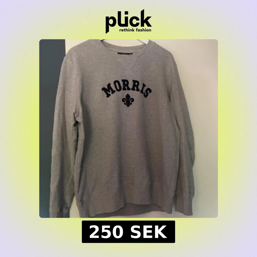 Snygg grå sweatshirt från Morris Stockholm med svart broderad logga och text på bröstet. Klassisk rund halsringning och långa ärmar. Perfekt för en chill och stilren look. Nypris: 1250kr