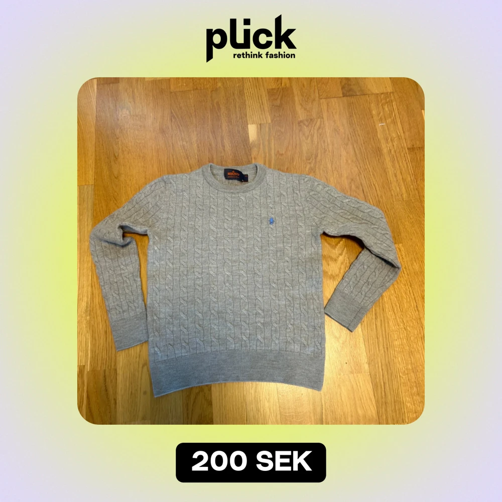 Säljer en stilren grå tröja från Morris i 100% merinoull. Den har ett klassiskt kabelstickat mönster och är perfekt för både höst och vinter. Tröjan är XS i barnstorlek inte XS i herr! Storleken är ca 146-152.