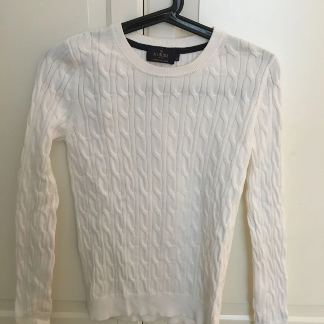 Vit kabelstickad tröja från Morris i stl S. Använd vid två tillfällen så nyskick.