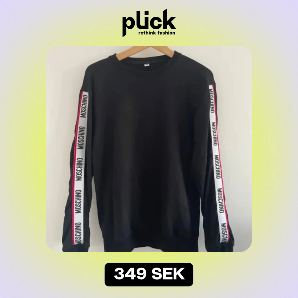 Moschino tröja - Svart med text på ärmarna. Bra skick! Storlek: S Hör av dig vid funderingar!