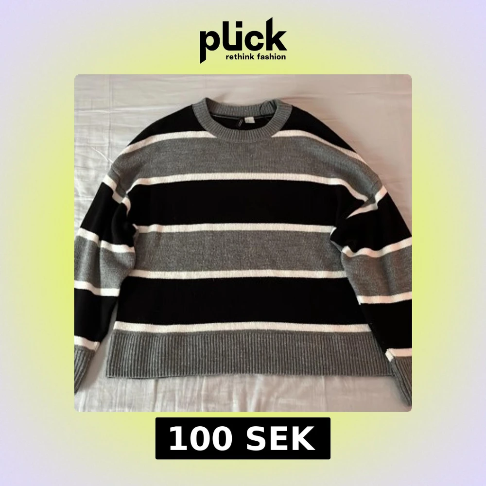 Säljer en randig tröja från H&M Divided i svart, grått och vitt. Tröjan har en avslappnad passform med ribbade muddar vid ärmslut och nederkant. Tröjan är i väldigt bra skick. Säljer den eftersom jag inte använder den längre. Perfekt för en höstlig look! (Nypris: 200 kr)
