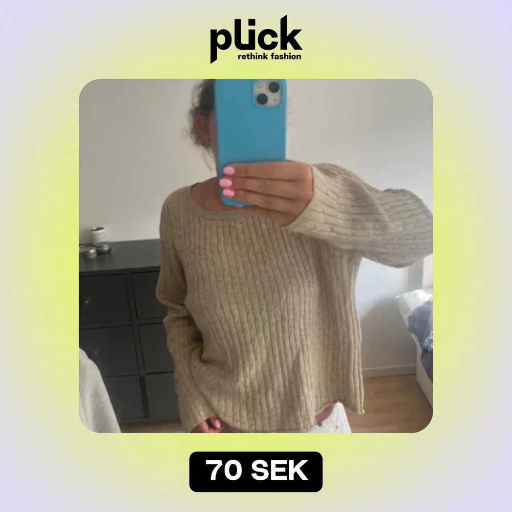 Beige kavelstickad tunn tröja, fint skick!🫶🏻 Säljer för att den inte kommit till användning. Står strl XL men skulle nog säga att den är oversized M💓💓 Pris kan diskuteras:)
