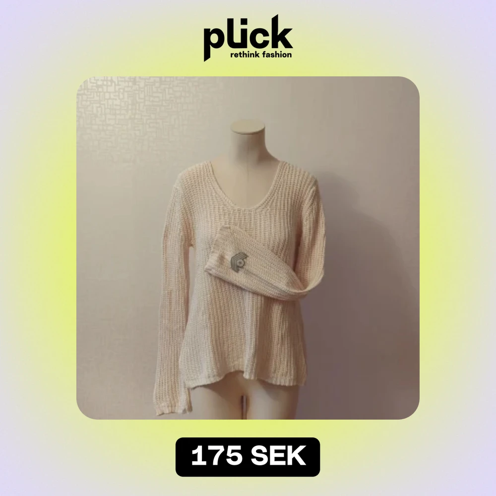 En mysig stickad tröja. Den ör mjuk i garnet och inte sticksig. Anvönd ett fåtsl gånger. Den är lagad en gån i halslinjen på framsidan, sista bilden. Tröjan är 2-3 stl för stor för dockan se mått i bio. 100% bomull