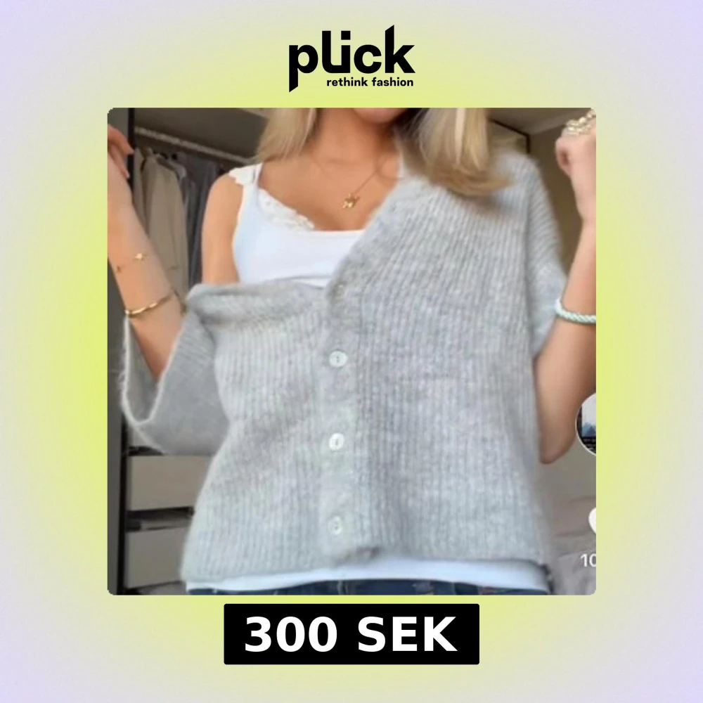 Säljer en mysig grå stickad kofta från gina med knappar framtill, inga hål eller liknade!