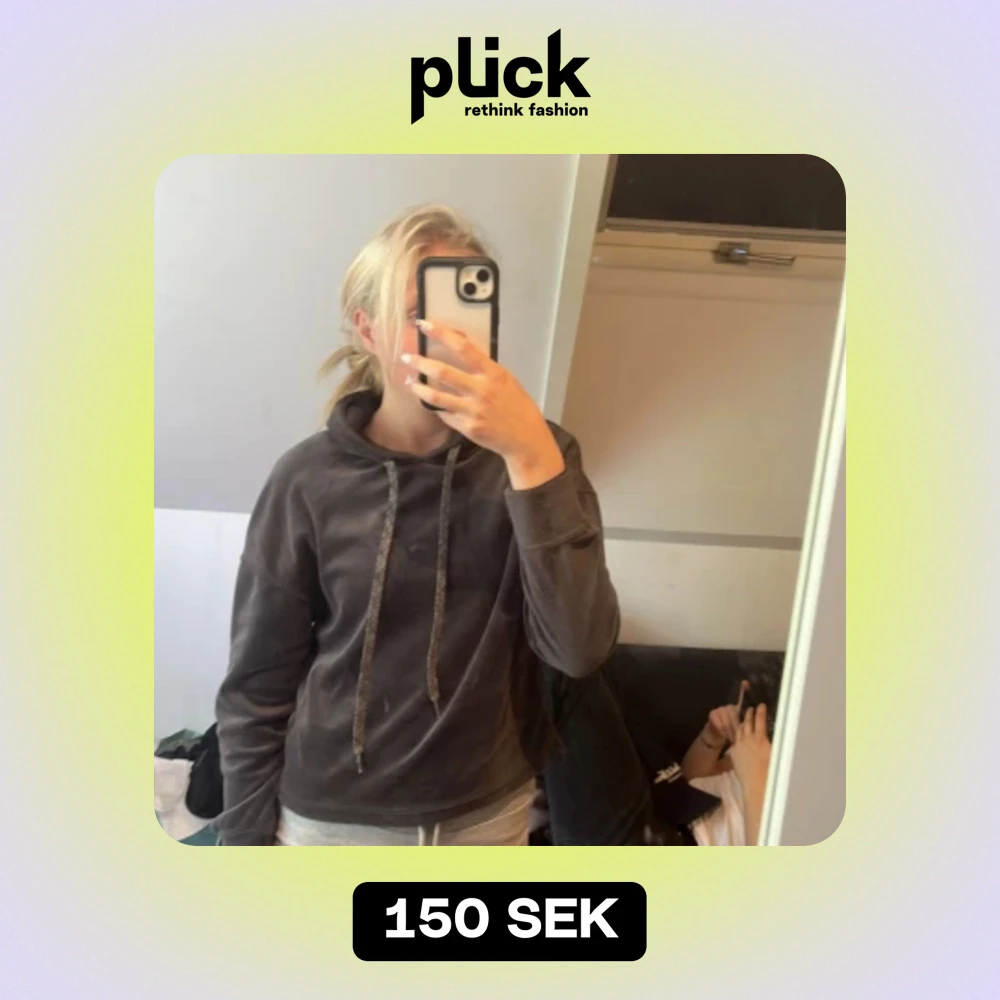 Säljer en supermysig grå hoodie i liten passform. Perfekt för höst och vinter med långa ärmar och en skön huva med snören. Den är i bra skick 🖤