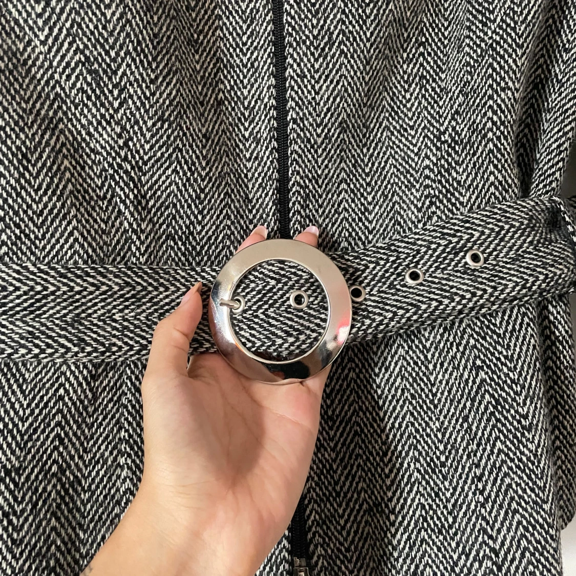Världens mysigaste jacka/tröja med skärp och fuskpäls vid handledarna.
