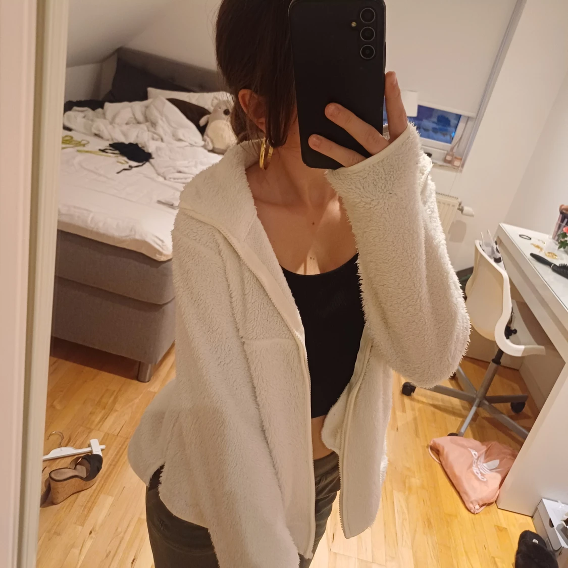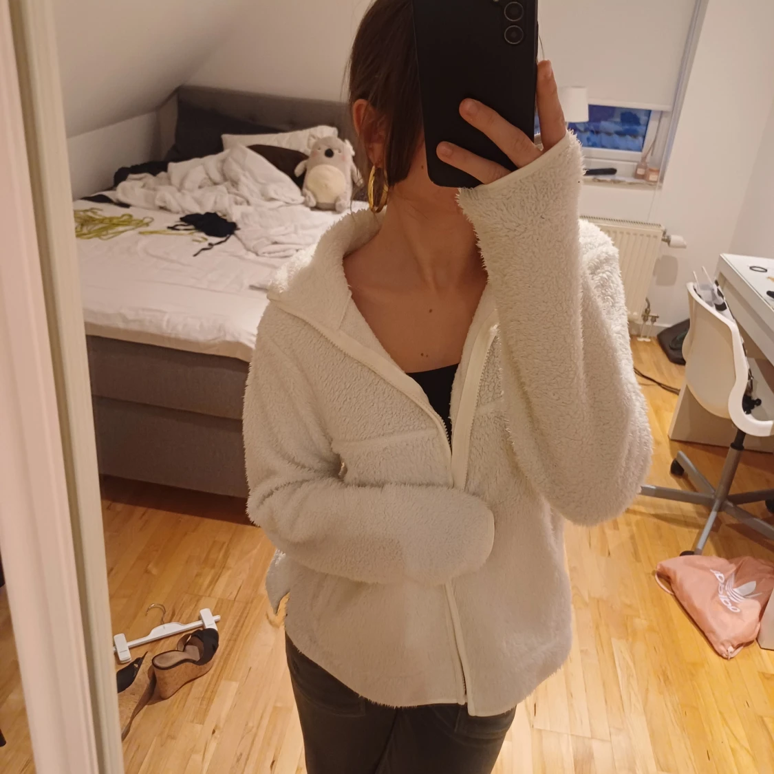 Jätte söt och mysig vit kofta, kommer knappast till användning och därför säljs.