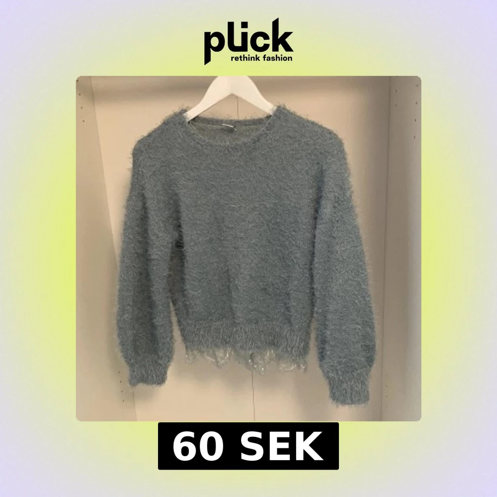 Supermjuk och fluffig ljusblå stickad tröja från Lindex med långa ärmar och breda muddar. Nedtill finns en söt spetskant som ger extra detalj. Den har dessutom ballong ärmar. Perfekt för dig som gillar mysiga och unika plagg med lite extra stil.