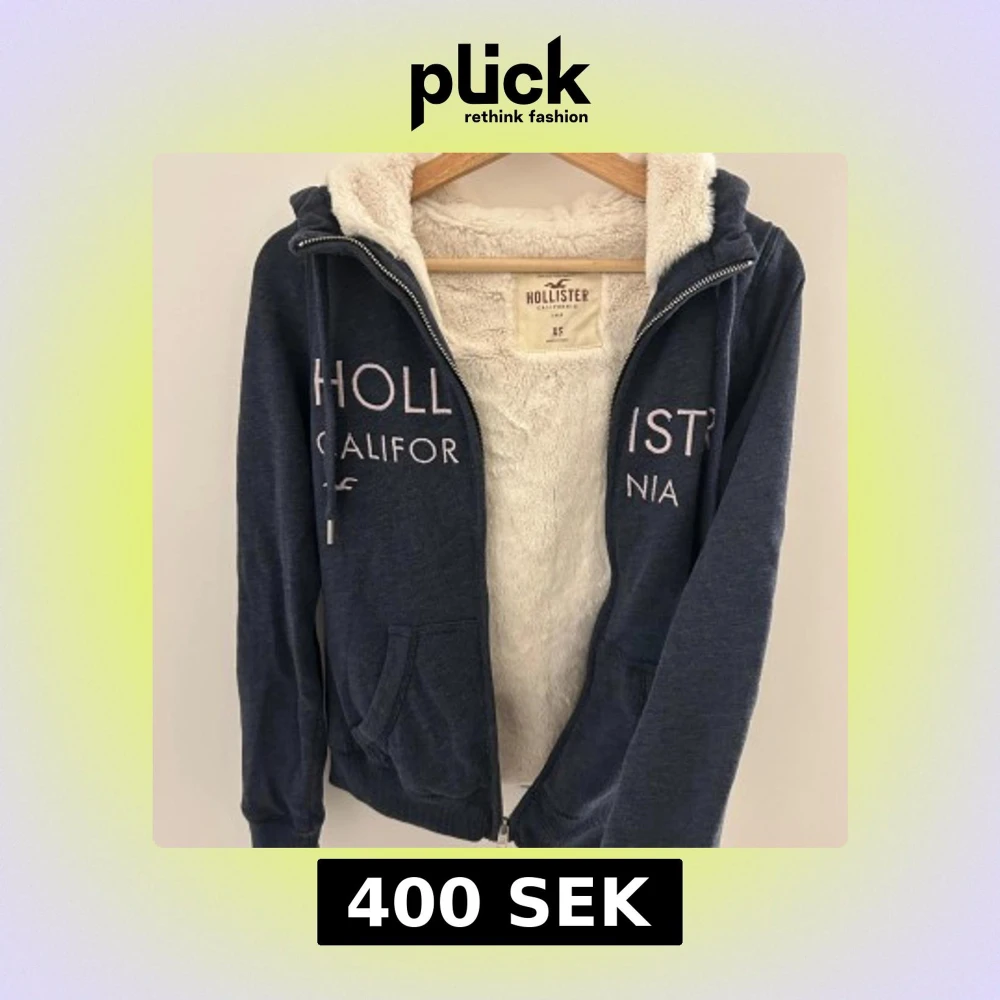 Mysig mörkblå hoodie från Hollister med fluffigt foder och dragkedja. Perfekt för kalla dagar. Använd fåtal gånger så är som gott som ny & Inga defekter!