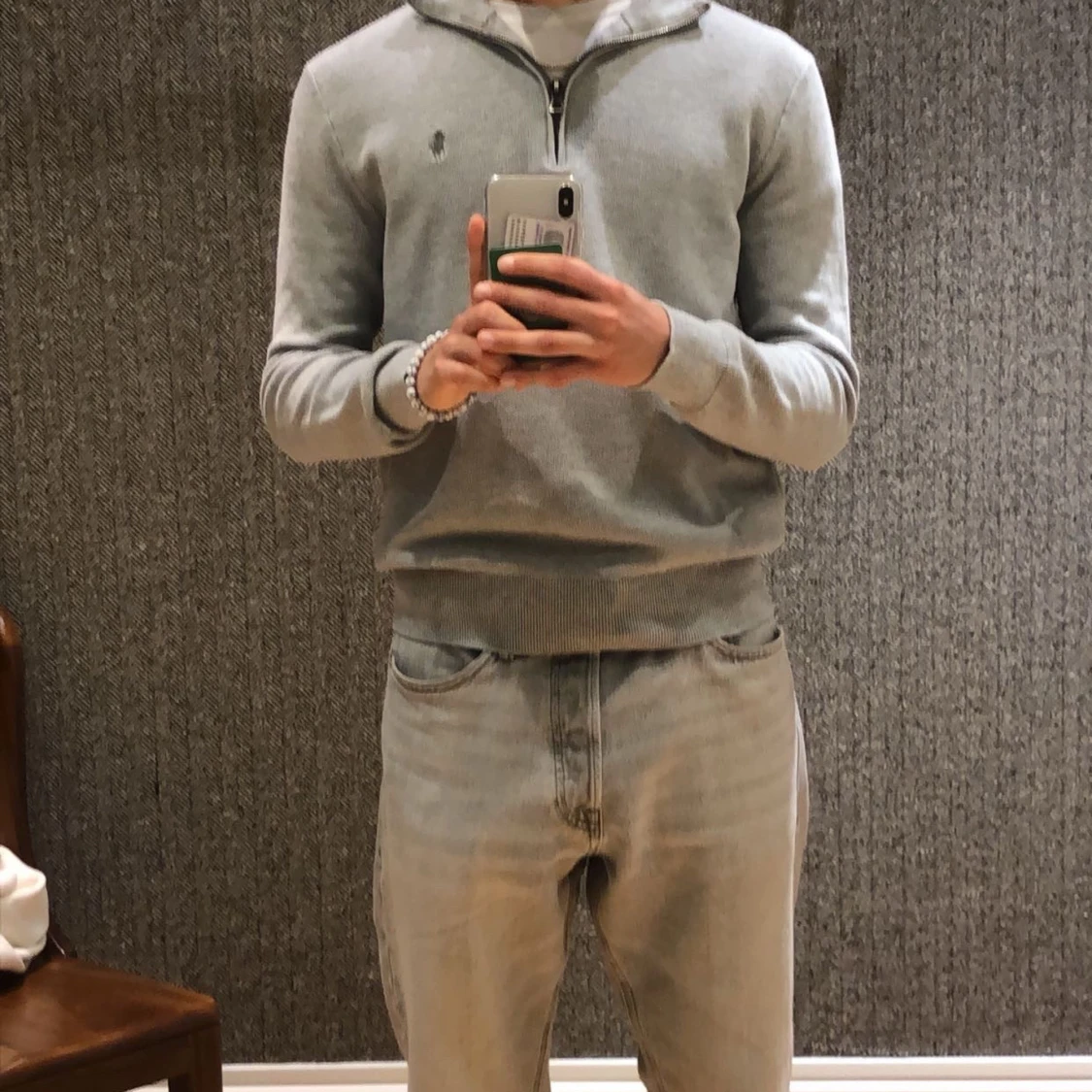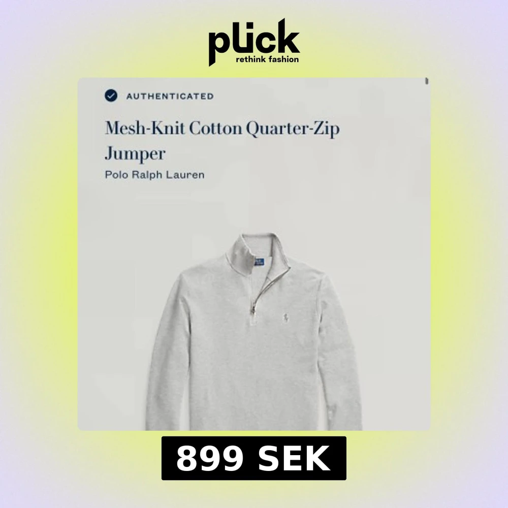 Säljer en stilren grå meshstickad tröja från Polo Ralph Lauren. Tröjan har en praktisk kvartslång dragkedja och är långärmad. Köpt på NK så självklart äkta och är nästan som ny. Nypris 2400.