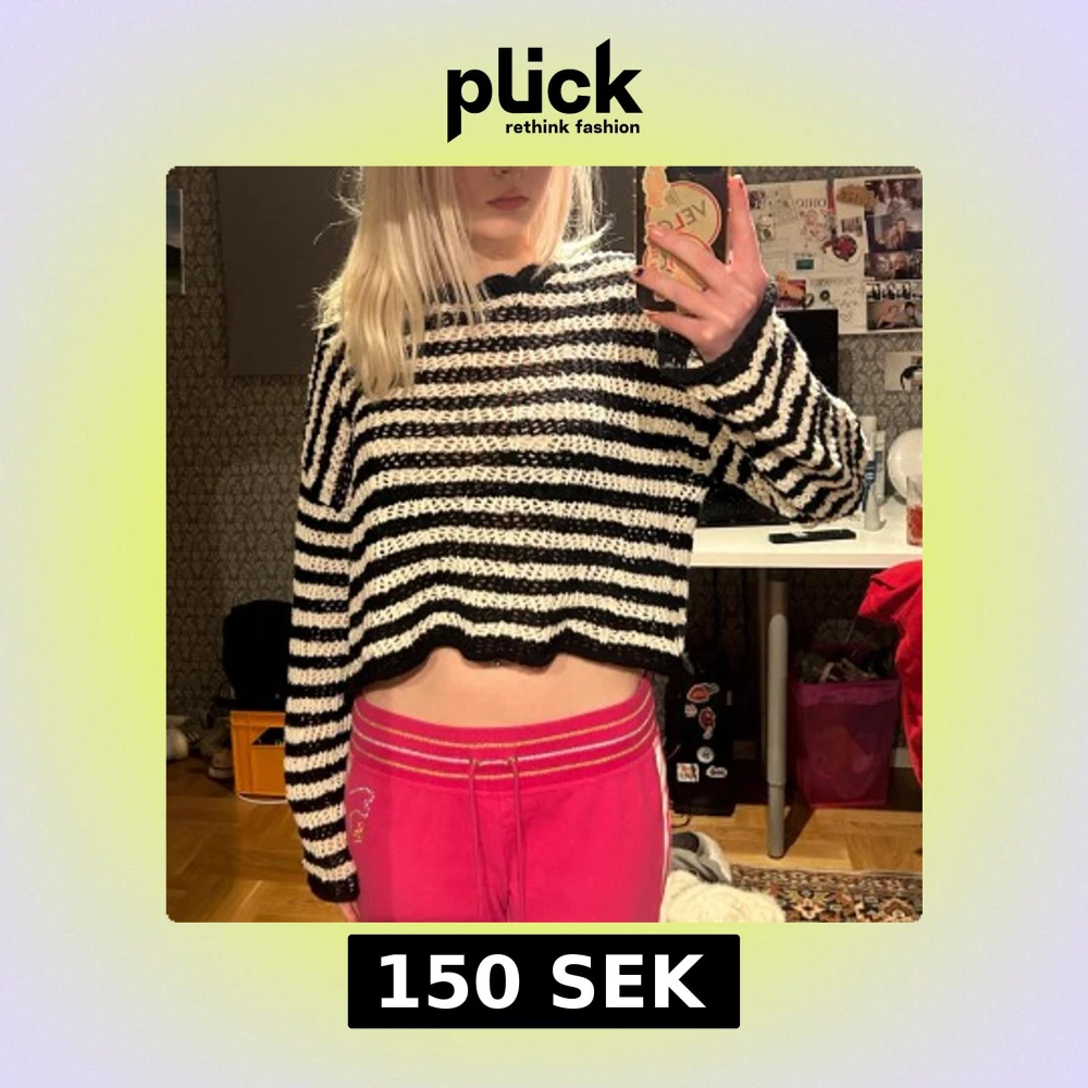 Super söt svartvit randig stickad tröja med croppad passform. Långa och vida ärmar.