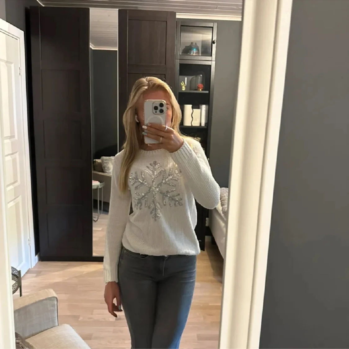 Superskön vit tröja med en snöflinga på. Jag köpte den i Portugal där storlekarna är annorlunda men skulle säga att den passar xs.