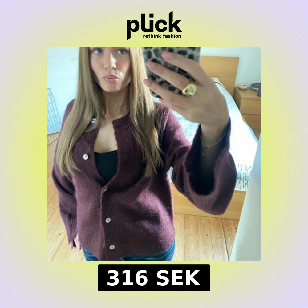 Säljer en fluffig och mjuk vinröd kofta med stora silvriga knappar framtill. Koftan har lång ärm och är stickad i ett skönt material som passar perfekt när det är lite kyligt. Enkel och stilren design som är lätt att matcha med jeans eller kjol.