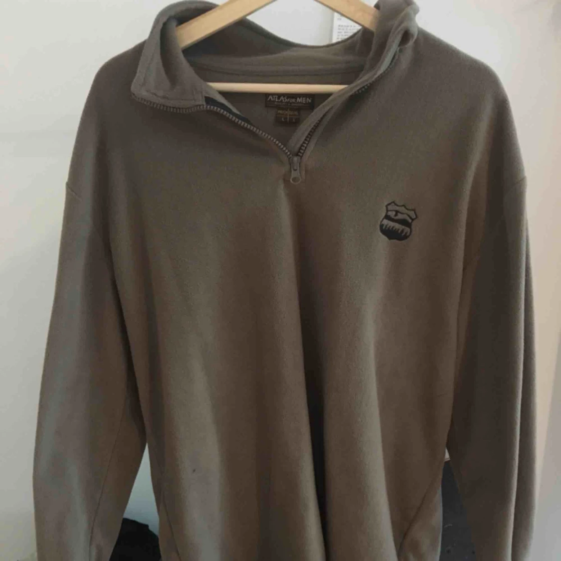 Mysig fleece från märket Atlas, köpt i Berlin på Humana. Jätteskön på vintern men också på sena sommarkvällar. I en grå/beige/grön färg. Den är inte så stor för sin storlek, går lätt att stoppa in i byxorna för en 90-tals look! Möts upp i Stockholm