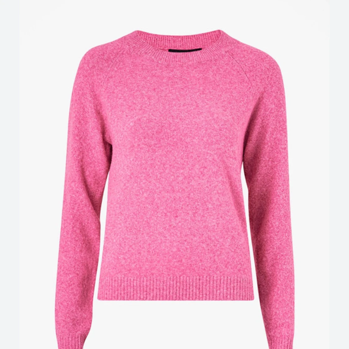 En enkel och snygg rosa stickad tröja med rund halsringning och långa ärmar. Tröjan har ribbade muddar vid ärmslut och nederkant, vilket ger en klassisk och stilren look. Perfekt för dig som gillar färg och vill ha något mjukt och bekvämt.