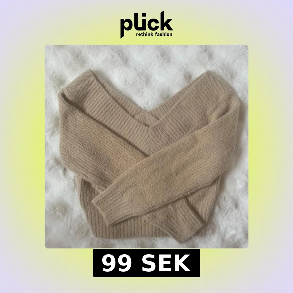 Supermysig beige stickad tröja från H&M, märket Divided, med bred v-ringning som går att bära offshoulder. Tröjan har lång ärm och ribbade muddar vid ärmslut och nederkant.