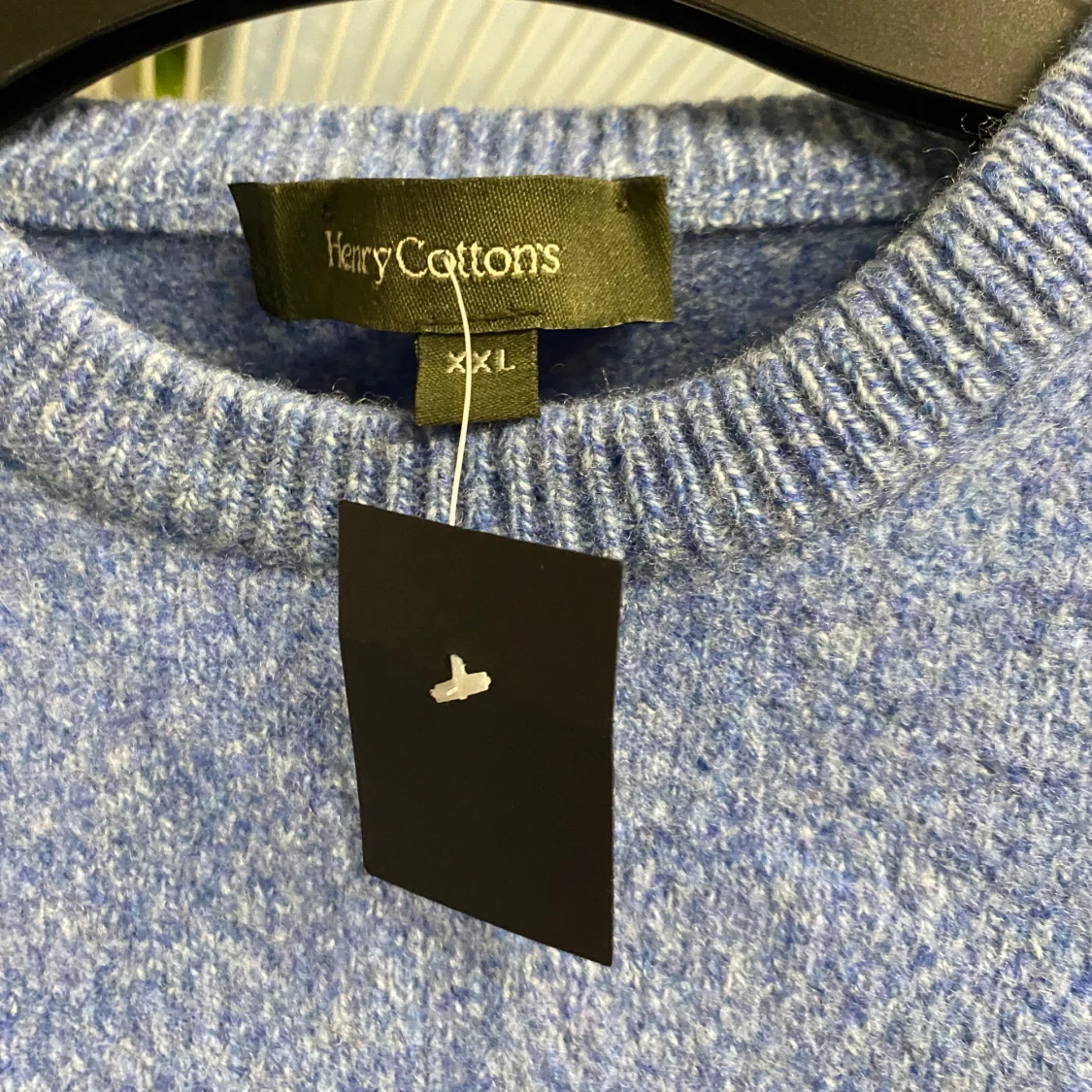 Säljer en snygg blå stickad tröja från Henry Cottons. Tröjan har en rund halsringning och långa ärmar. Perfekt för kyligare dagar. 💙Var XXL men krympt i tvätten och motsvarar nu storlek S