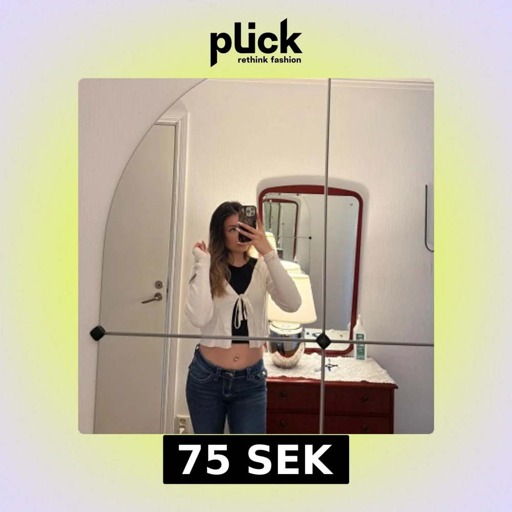 Säljer en vit croppad kofta med knyt framtill. Koftan har lång ärm och är i ett tunt, mjukt material. Perfekt att slänga över ett linne eller topp för en snygg lager-på-lager-look. Köpt ifrån NA-KD och storleken är M. Passar även XS och S
