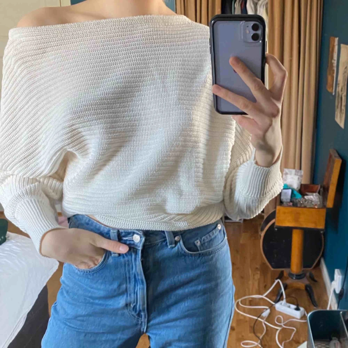 Skitsnygg stickad tröja från NAKD! Ganska tunn i materialet, så funkar perfekt för våren! Använd några gånger men fortfarande bra kvalité! Köparen står för frakt!