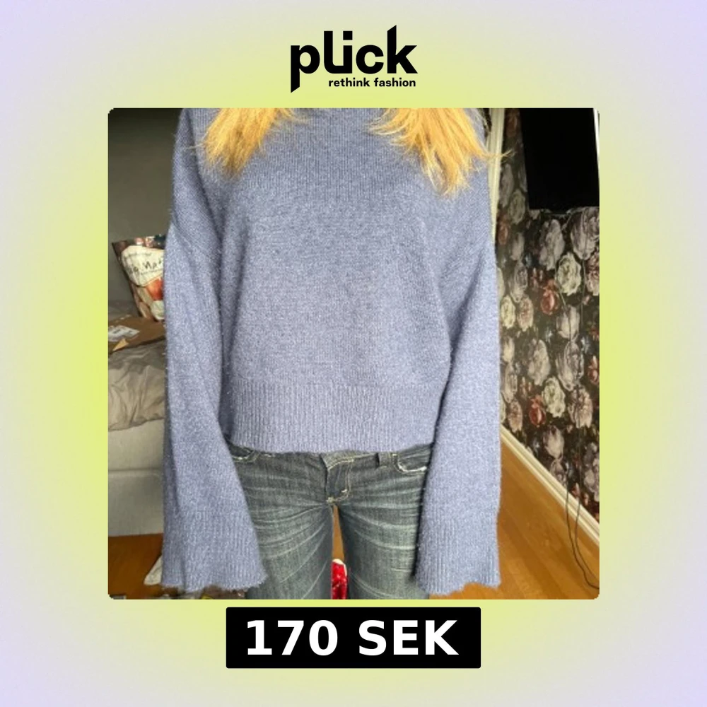 Mysig blå stickad tröja med vida armar, skriv för fler bilder eller frågor💞💞