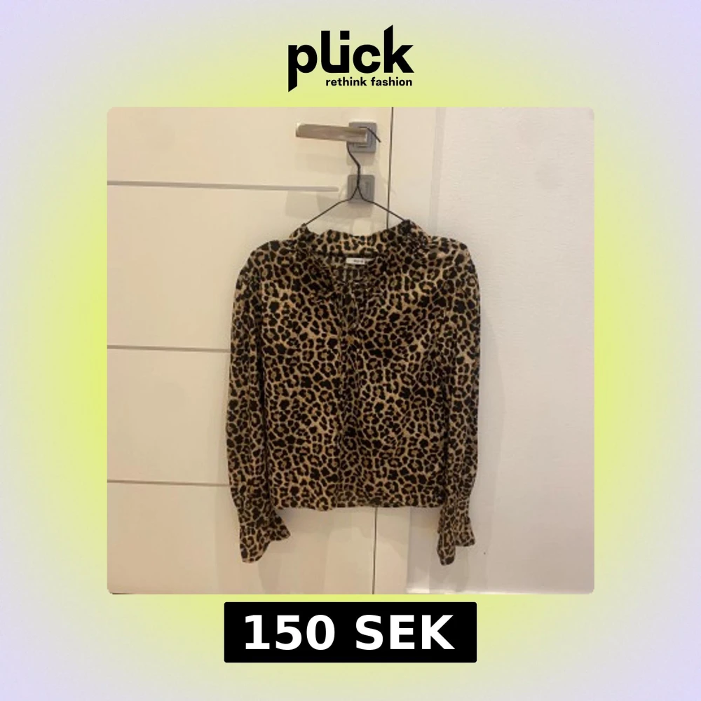 Säljer en snygg leopardmönstrad blus med volangdetalj och knytning vid kragen. Blusen har långa ärmar och är i ett mjukt, lätt material. Perfekt för dig som vill sticka ut lite extra!