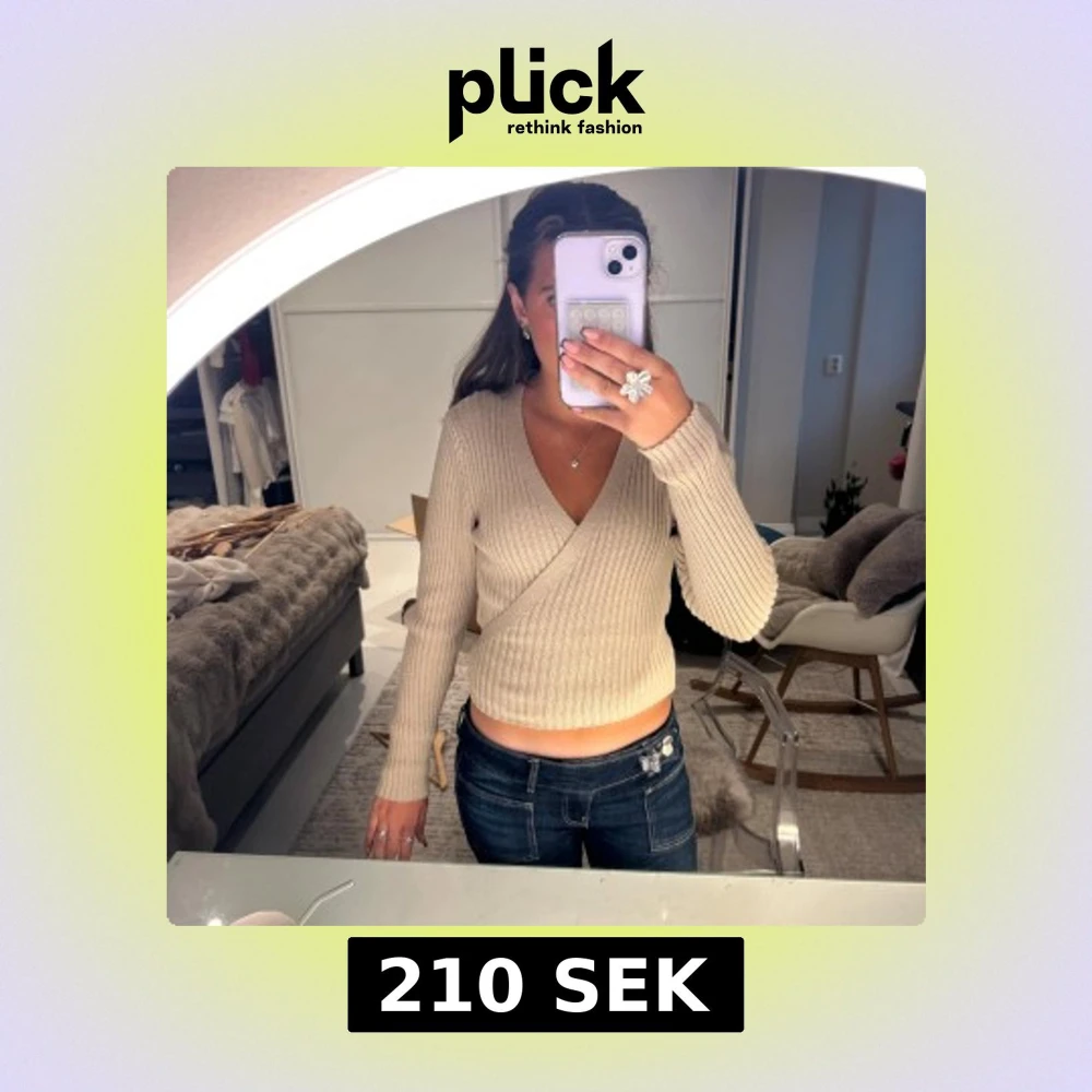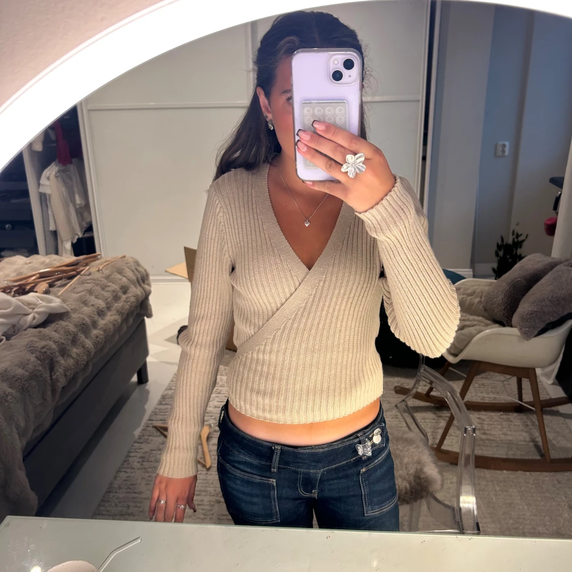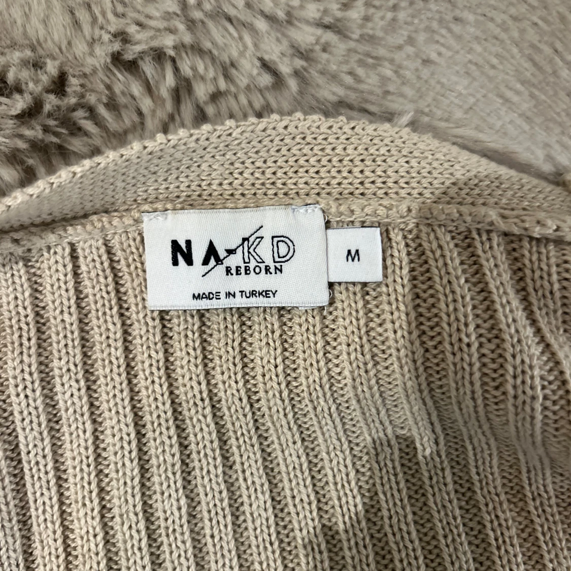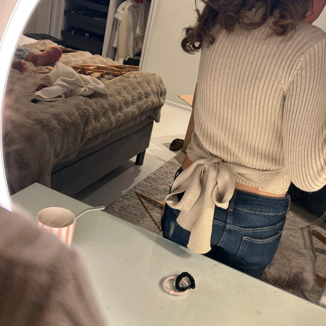Aldrig använd, M men den sitter som S och den är stretchig. Superfin ribbad beige omlott kofta från NA-KD med v-ringning och långa ärmar. Tröjan har en snygg knytning i ryggen som ger en extra detalj. Perfekt att styla med jeans eller kjol för en chill look. 🥰🥰