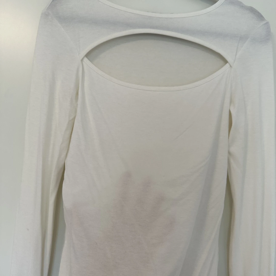 Lite genomskinlig vit tröja med öppning lite över bröstet