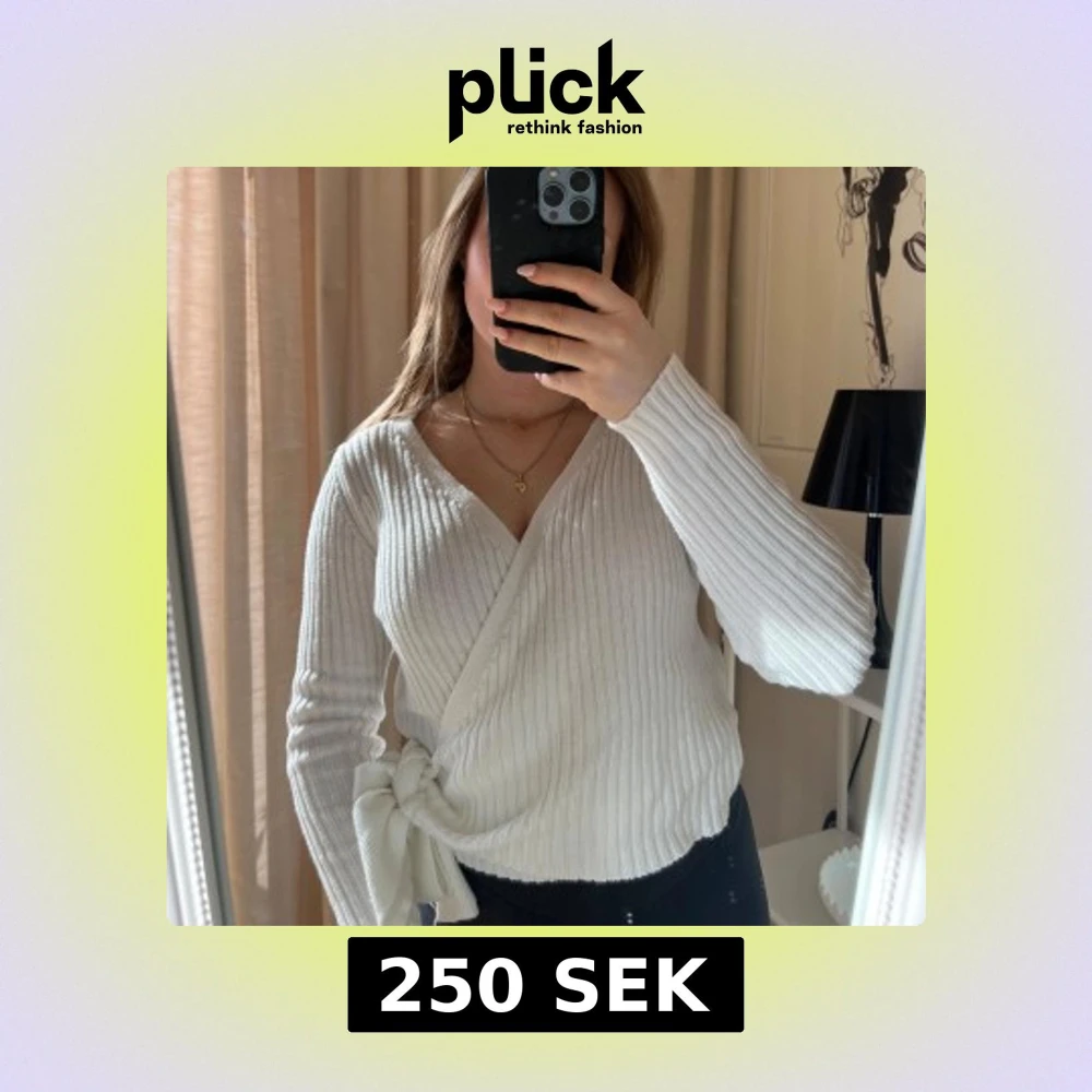 Säljer en stilren vit ribbad omlottopp från NA-KD. Toppen har en v-ringad design med långa ärmar och en knytning i sidan. Tröjan är i storlek XS men passar mig som är S. Den är använd fåtal gånger där med väldigt bra skick!🩷