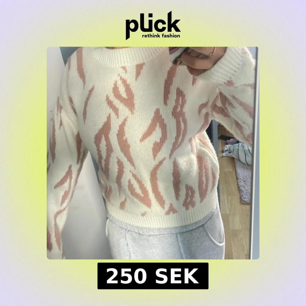 Superfin stickad tröja i vitt med ljusrosa zebramönster. Tröjan har rund halsringning, ribbade muddar och är långärmad. Perfekt för dig som vill ha en mysig och trendig look med lite extra attityd.