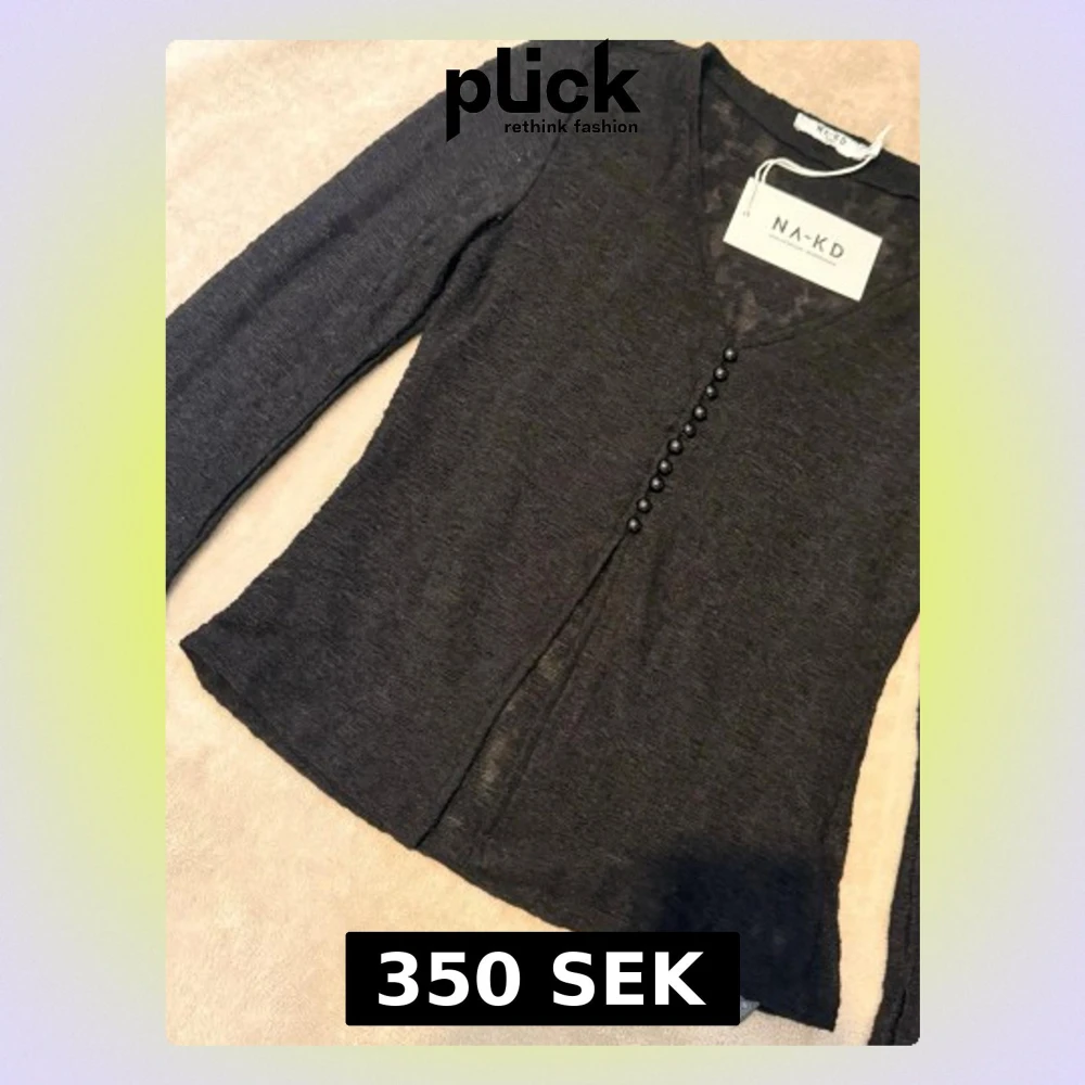 Snygg svart tunn kofta från NA-KD med v-ringning och dekorativa knappar framtill. Modellen är figurnära med långa ärmar och lätt transparent material som ger en trendig look. Perfekt att styla över ett linne eller topp.