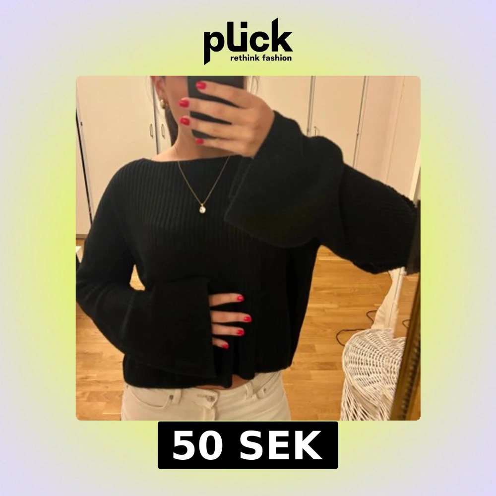 Svart stickad tröja från NA-KD med breda, långa ärmar och avslappnad passform. Tröjan är ribbstickad och har en croppad modell 💖💖