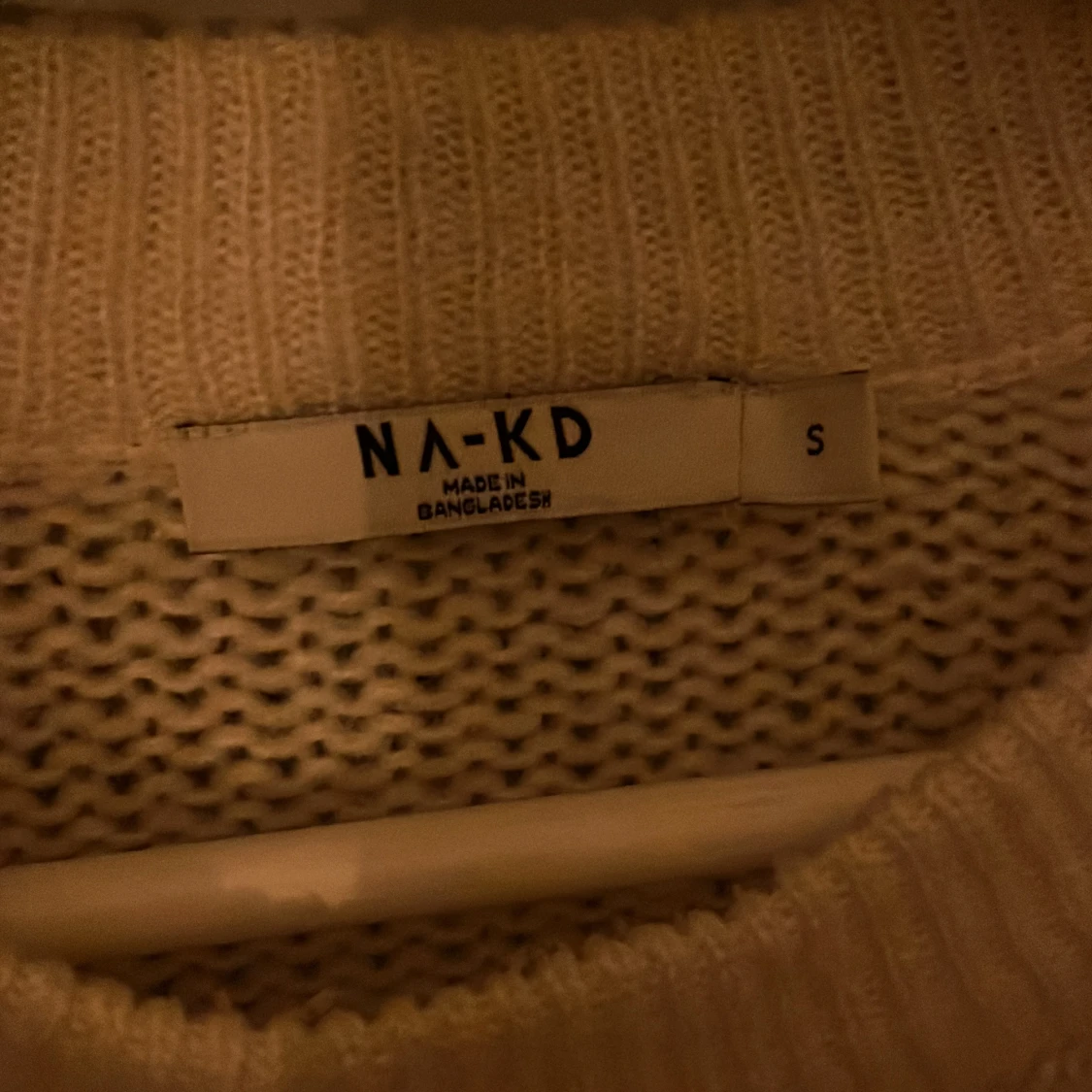 Mysig beige stickad tröja från NA-KD i storlek S. Tröjan har en rund halsringning, långa ärmar och en relaxed fit. Perfekt för lager-på-lager och chill höst- och vinterdagar.