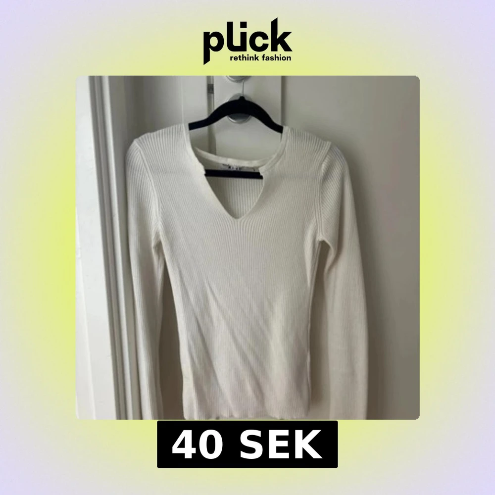Säljer en vit ribbad långärmad tröja från NA-KD i storlek XS. Tröjan har en v-ringning med liten cutout vid halsen och är i stretchigt material som sitter skönt på kroppen.