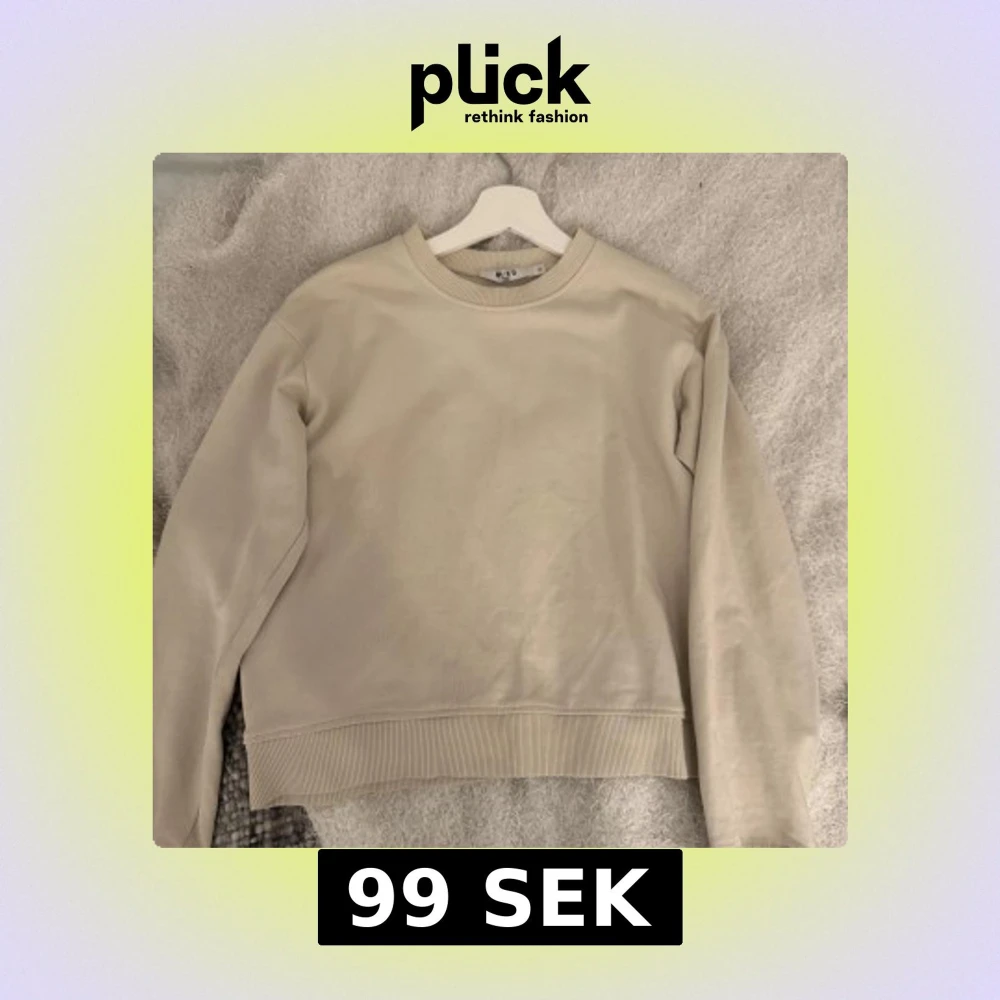 Säljer en stilren beige sweatshirt med rund halsringning och ribbade muddar vid ärmslut och nederkant. Perfekt för en avslappnad och enkel look. Passar till det mesta och är superbekväm.