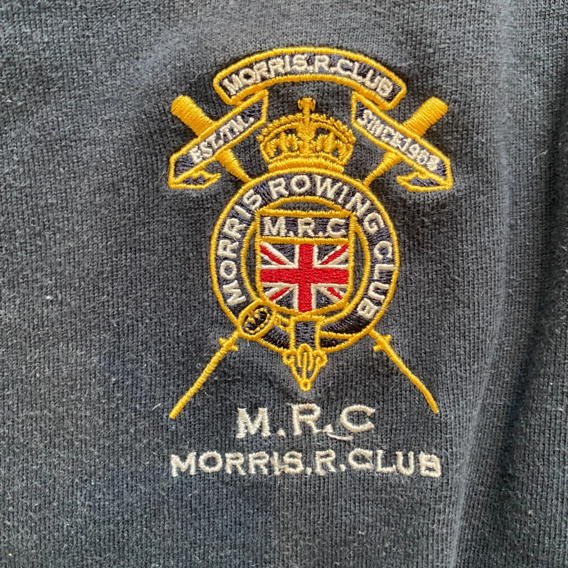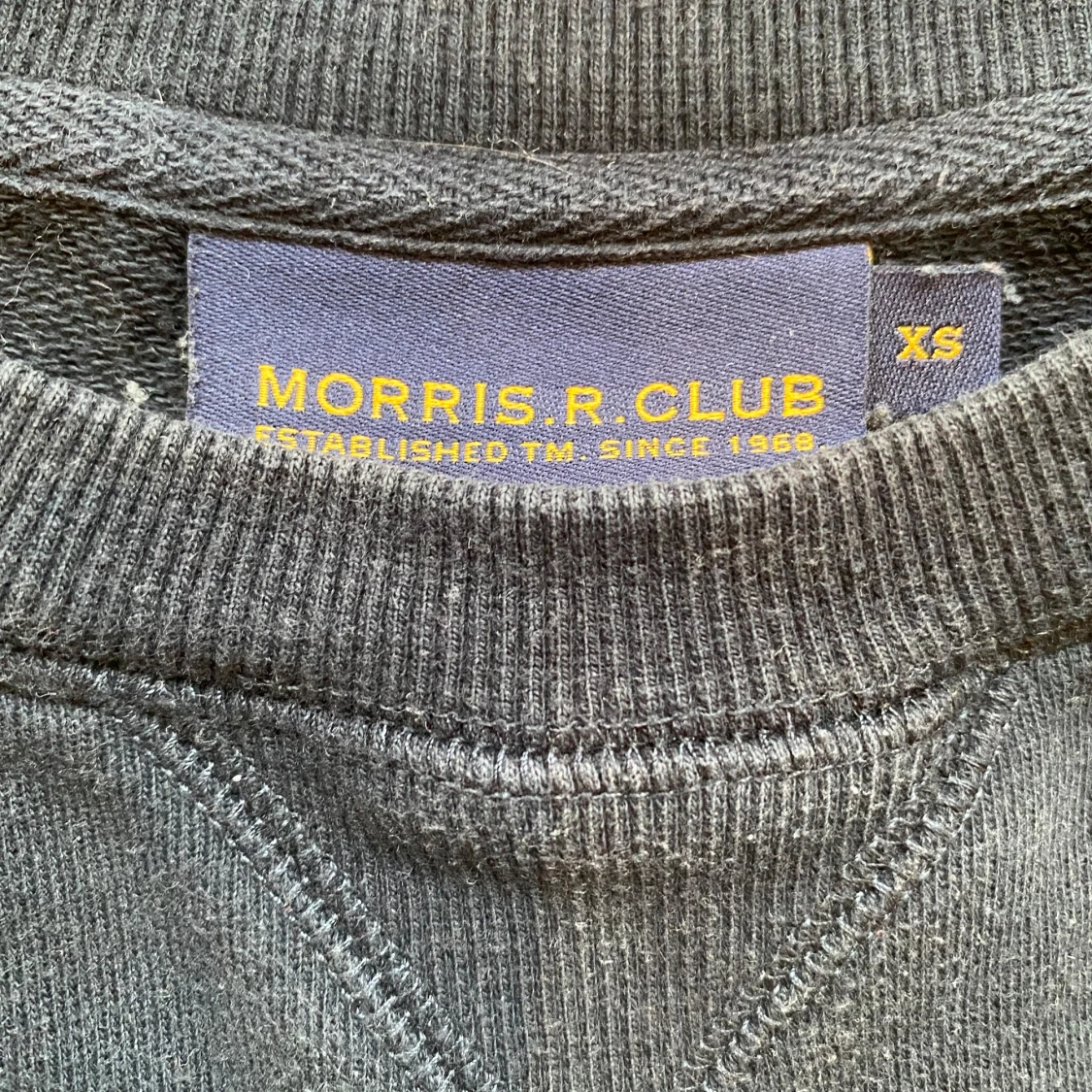 Säljer en navy sweatshirt från Morris med ett broderat emblem på bröstet. Tröjan har långa ärmar och ribbade muddar vid ärmslut. Skriv vid fler frågor eller pris.