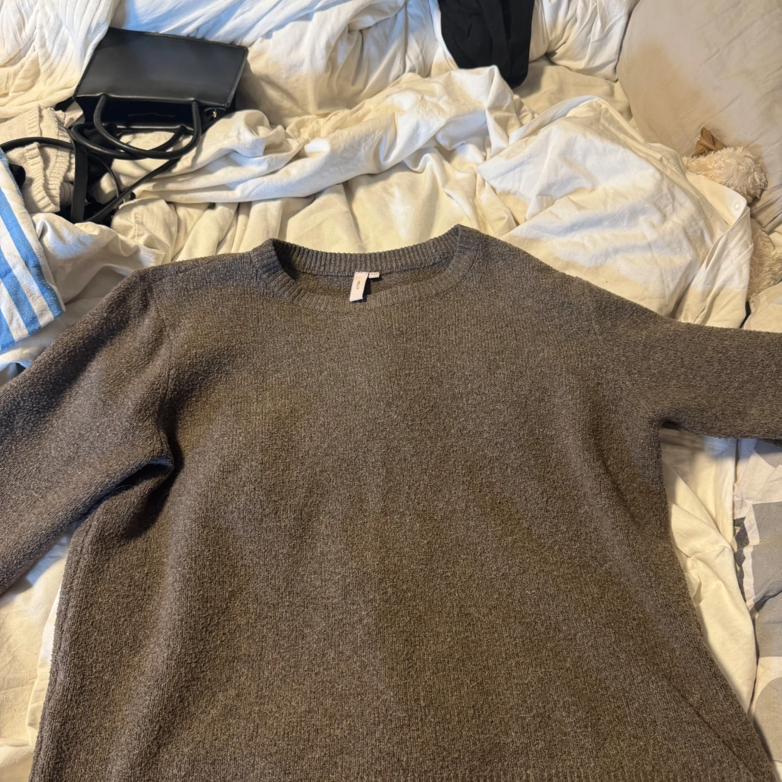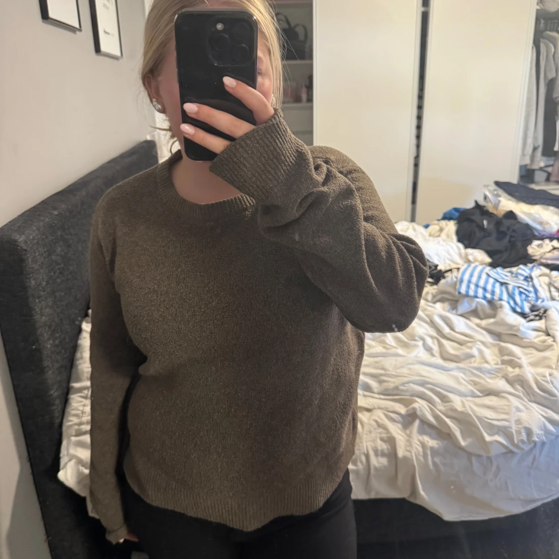 Mysig brun stickad tröja från Nelly i storlek M. Tröjan har rund halsringning, långa ärmar och ribbade muddar vid hals, ärmslut och nederkant. Perfekt för att hålla sig varm under kyliga dagar och passar till jeans eller leggings.
