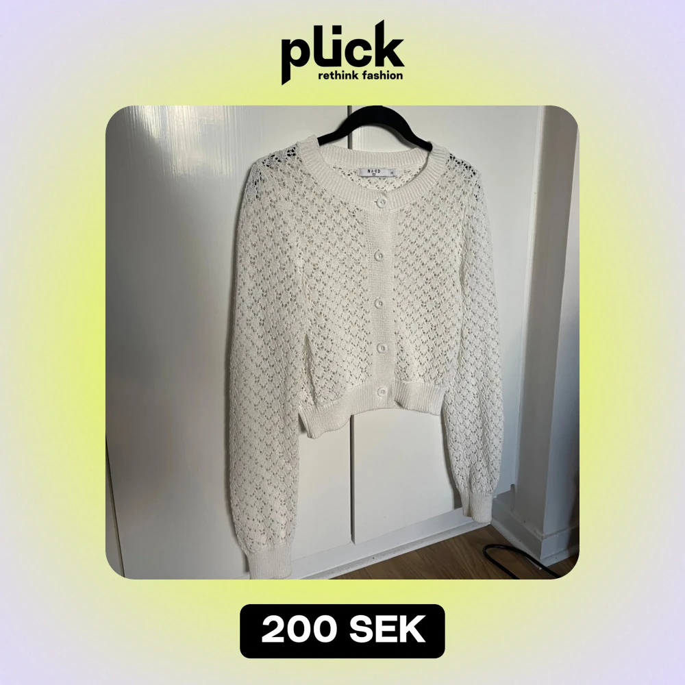 Säljer min superfina vita stickade/broderade kofta från NA-KD med knappar framtill. Använd vid 1 tillfälle