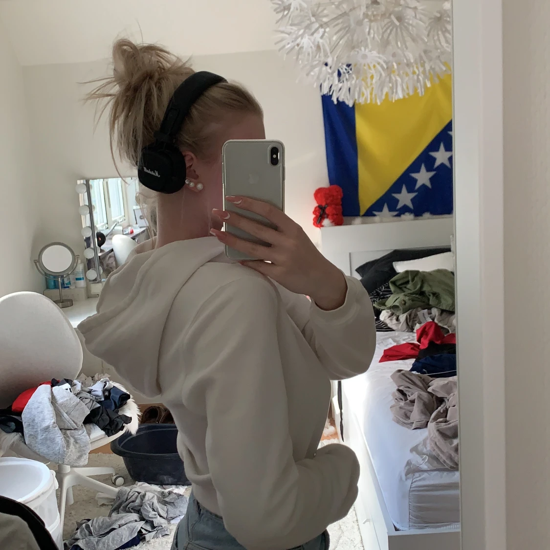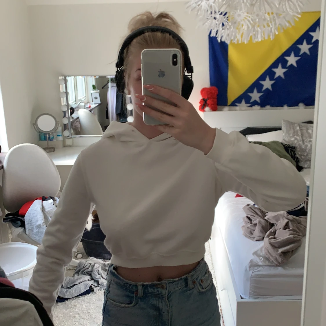 Vit croppad luvtröja från nelly. Band finns om man vill ha med det! Kontakta mig vid frågor eller funderingar 🤍