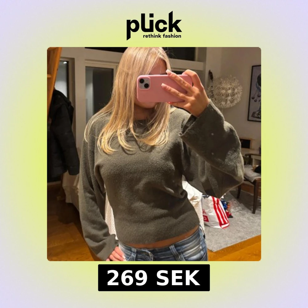 Supersnygg mörkgrön stickad tröja med breda, långa ärmar och rund hals. Använd två gånger!🩷