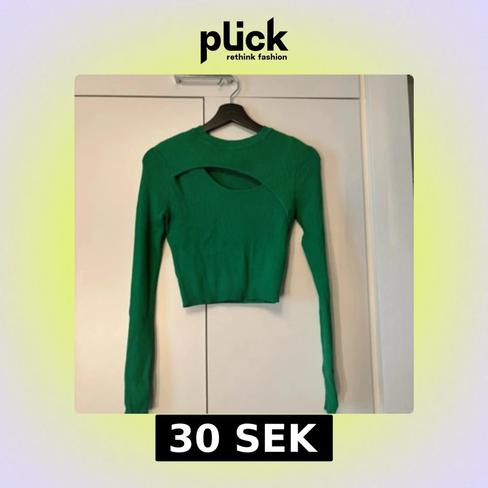 Snygg grön ribbad tröja med en unik cut-out detalj vid halsen. Tröjan har långa ärmar och en croppad passform, perfekt för en trendig look. Passar utmärkt till både jeans och kjol.