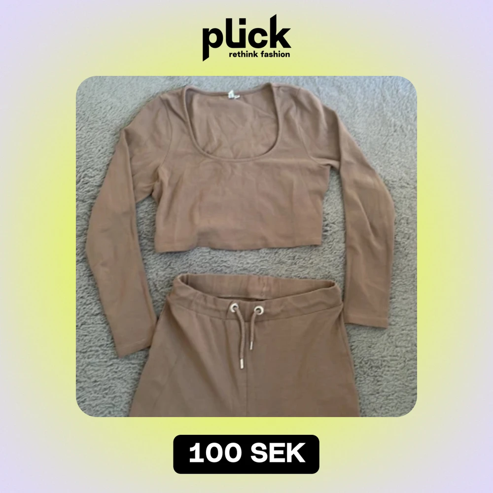 Beige sett från Nelly, använd fåtal gånger. Croppad topp med utsvängda byxor i strl M, passar även S