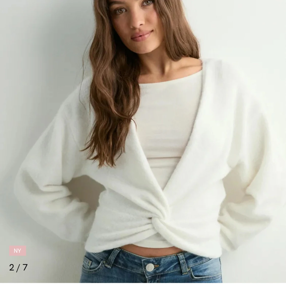 Nellys nya supermjuk vit stickad kofta med omlott och twistad detalj framtill. Den är helt ny använd bara 1 gång och jag säljer den för att den inte riktigt passade mig och det gick inte att returnera den💞Nypris 399kr!