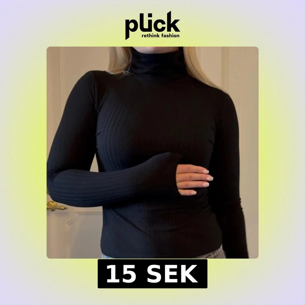 Svart ribbad polotröja ifrån Nelly med lång ärm och tight passform. Storlek XS, fint skick!