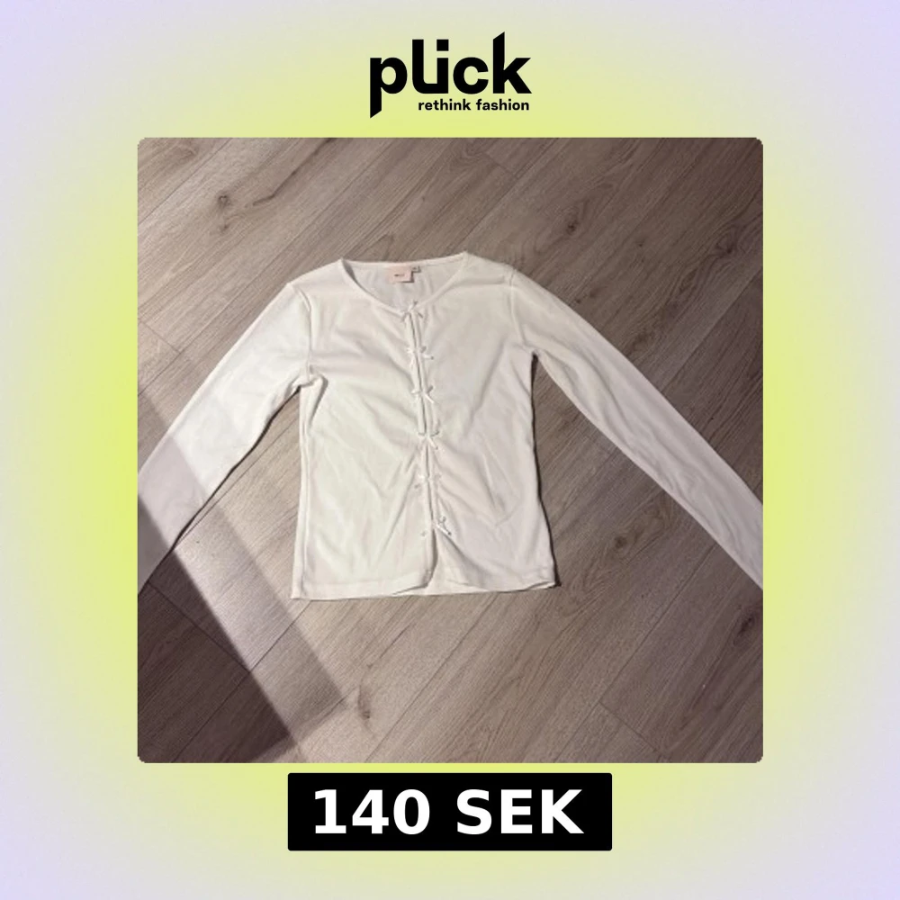 Supersöt vit ribbad topp från Nelly i storlek XS. Långärmad med flera små rosetter framtill. Tröjan är i nyskick. Köparen står för frakten