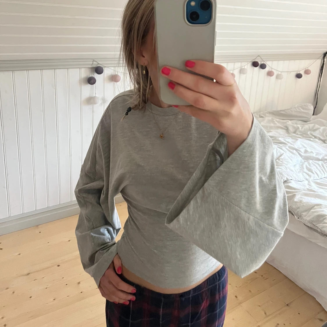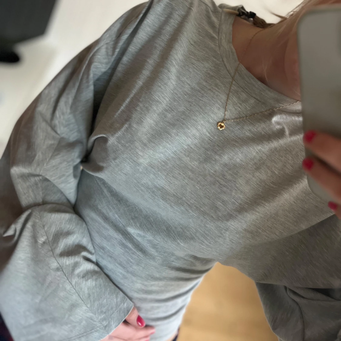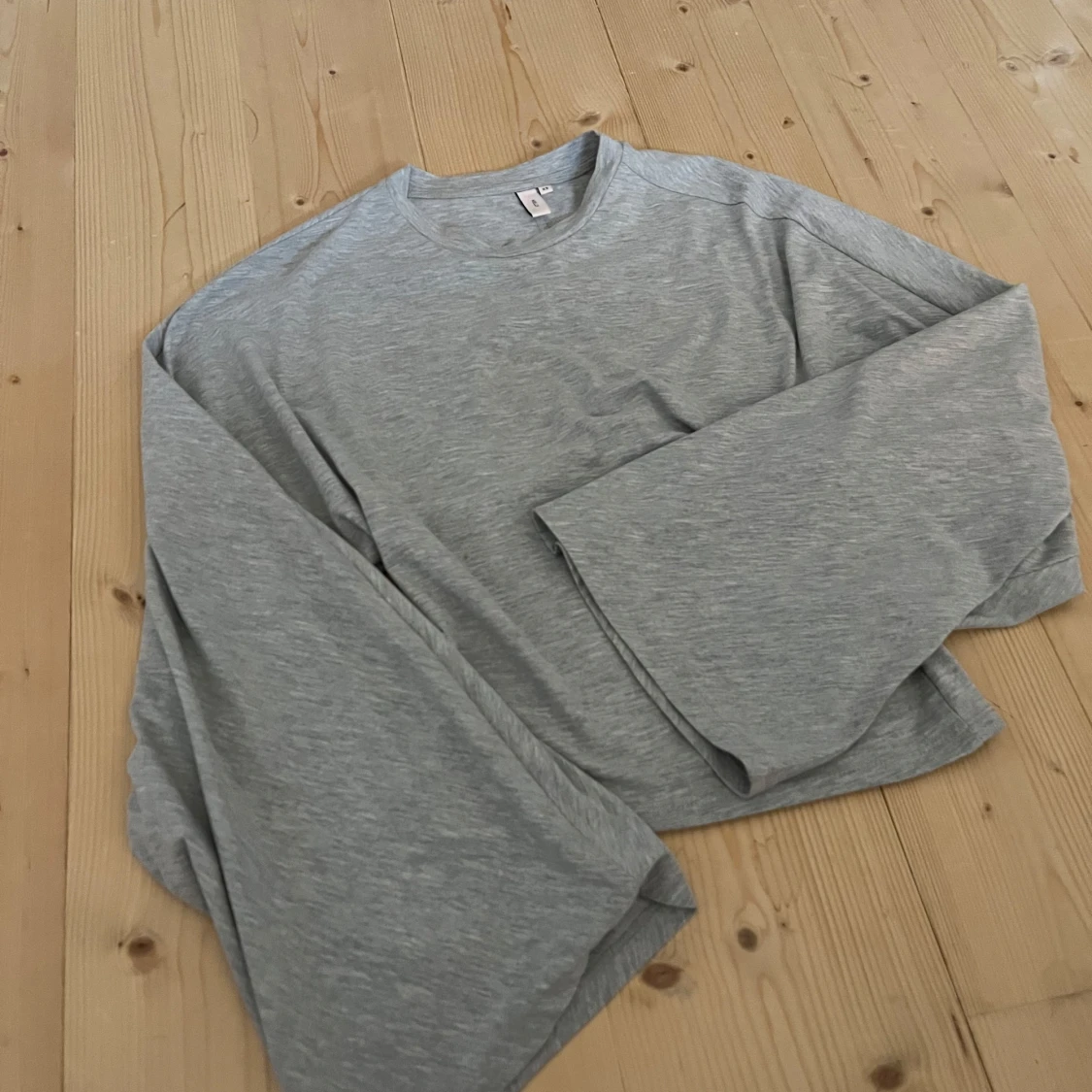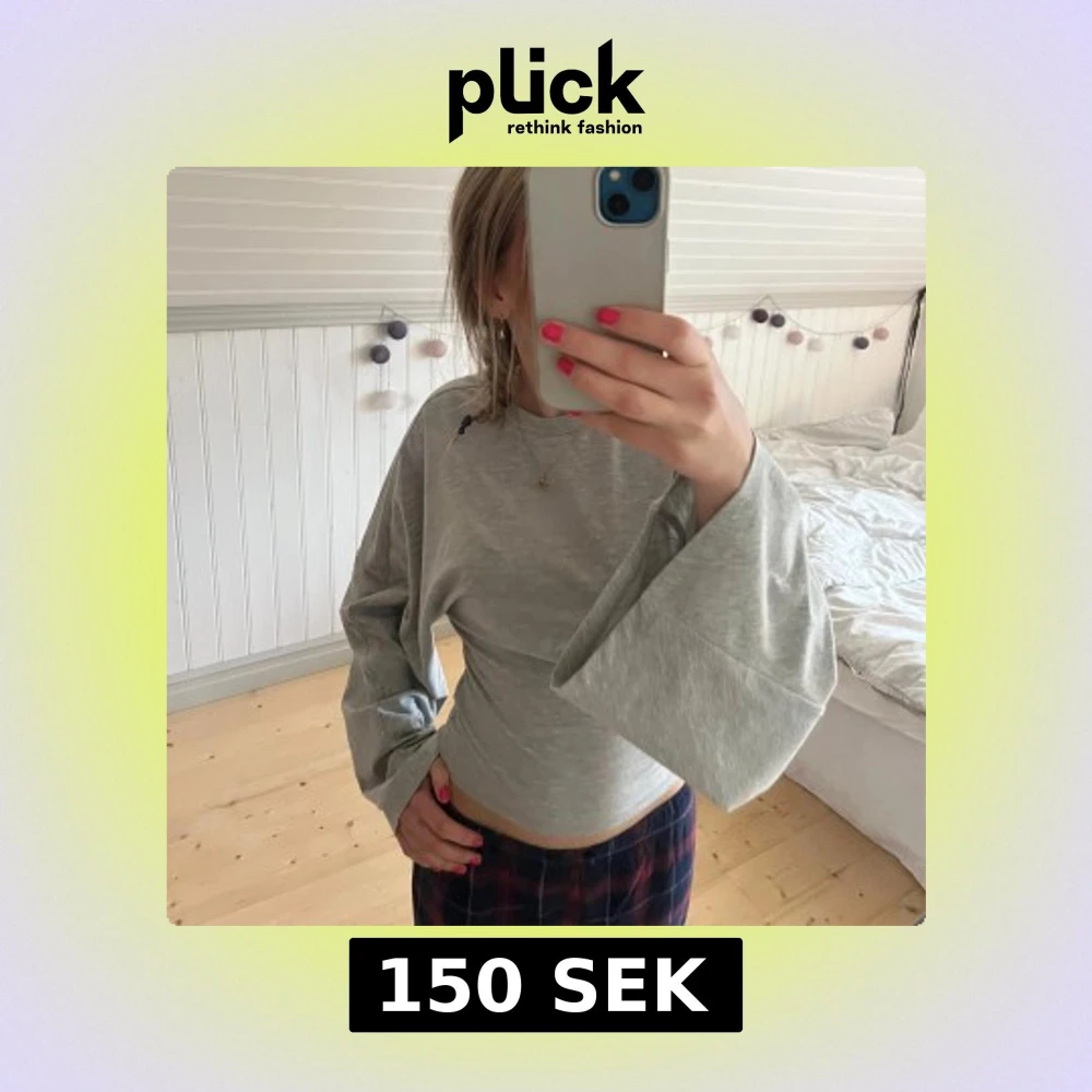 Säljer en ljusgrå långärmad tröja från Nelly i mjuk bomull. Tröjan har vida ärmar och en rak, något croppad passform. Perfekt för dig som gillar en chill och trendig stil. Enkel att matcha med både jeans och kjol.