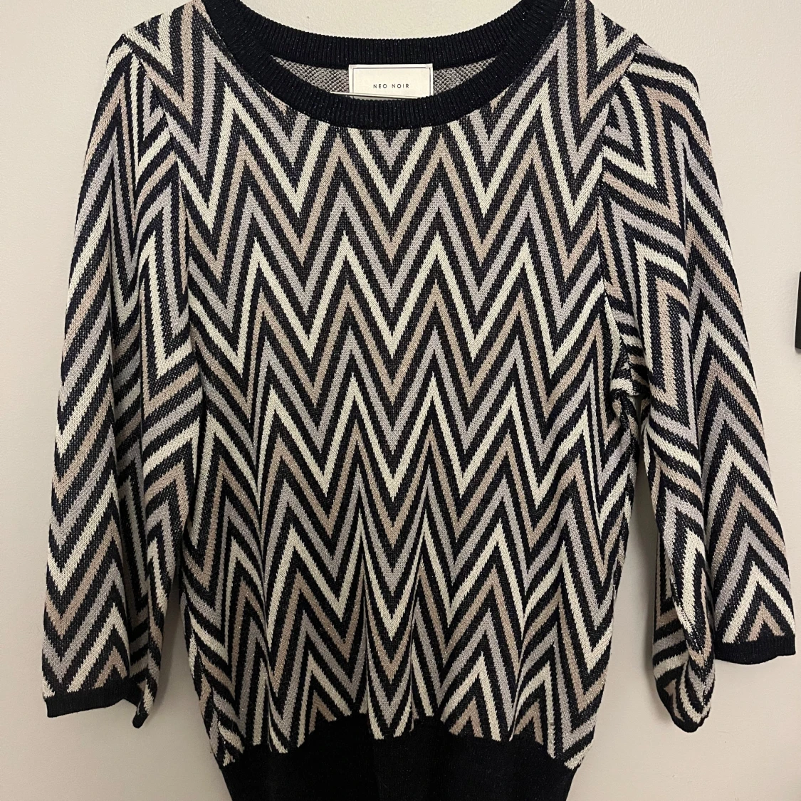 Super snygg Neo noir blus med trekvarts ärm i mörkblå och beige! Den är använd 1 gång. Orginalpris 750kr💓 Lånad bild!!