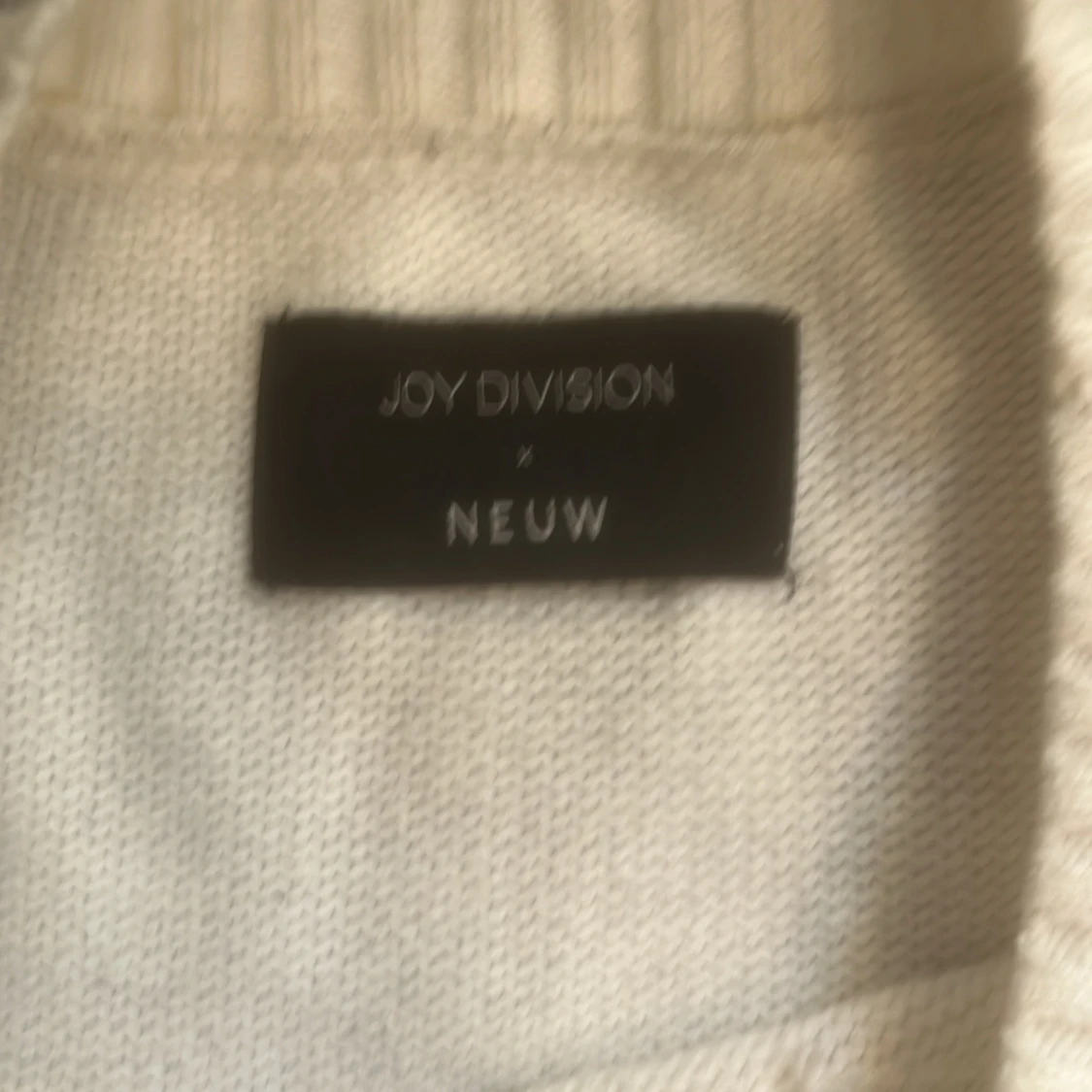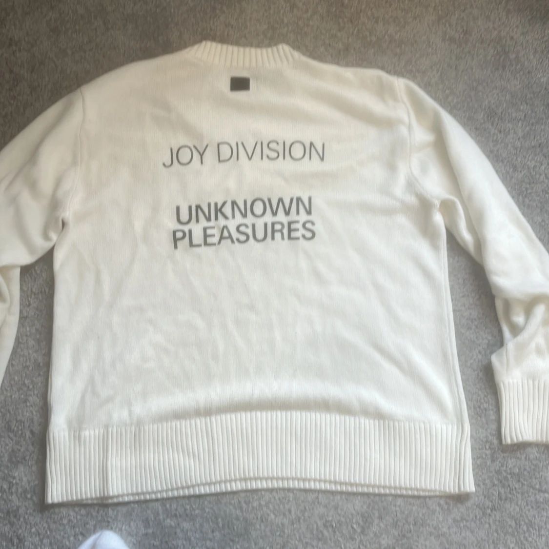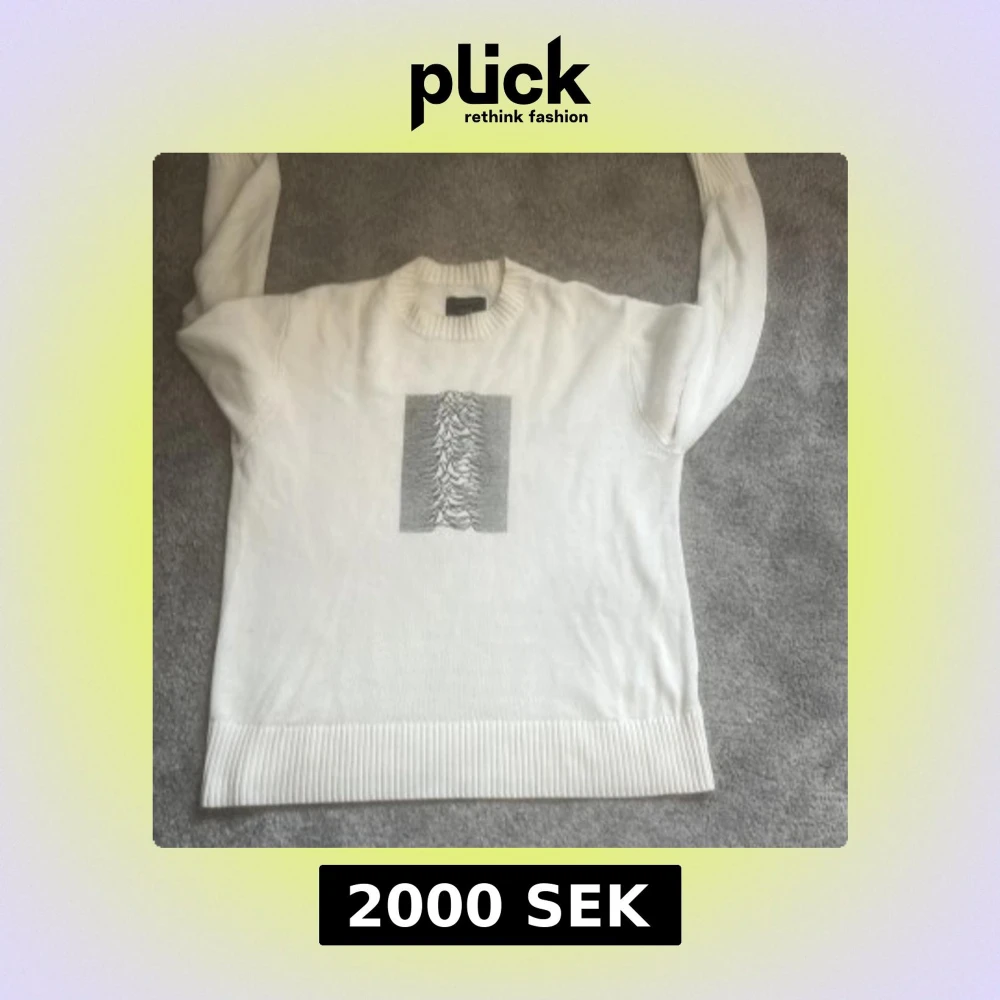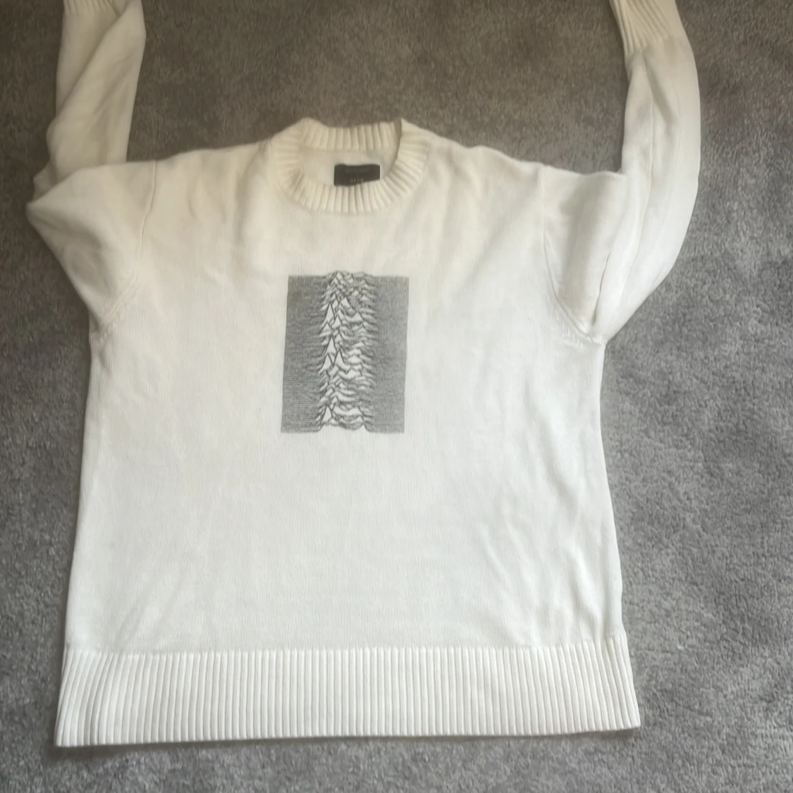 Säljer en vit tröja från Joy Division x Neuw med det ikoniska 'Unknown Pleasures'-trycket på baksidan. Tröjan har långa ärmar och en ribbad kant vid ärmslut. Nypris 2600kr. Oz S men som L